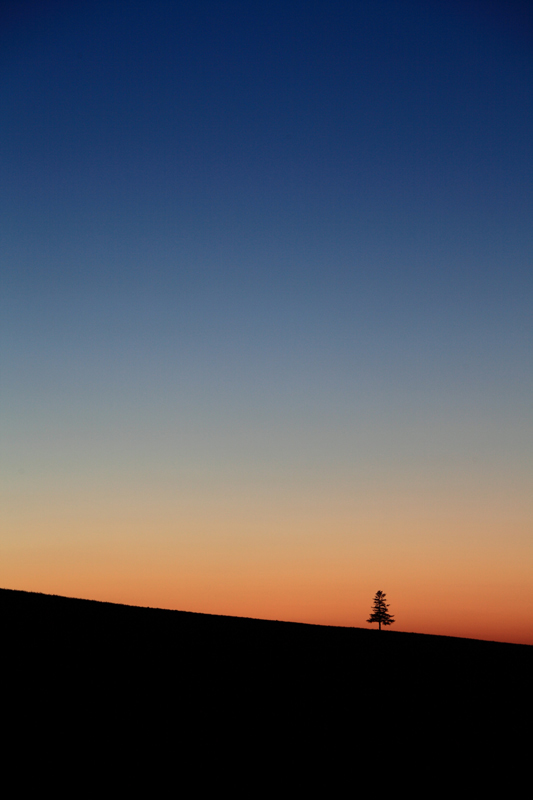 黄昏の一本の木。