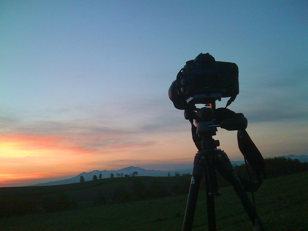 The silhouette of Mt.Taisetsuzan emerged under the purple cloud at 4 AM.