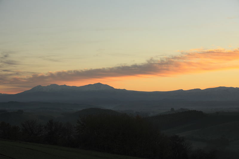 そんな偶然にここにいられることに感謝しつつ、大雪山にかかる朝焼けの雲をカメラに収めた。