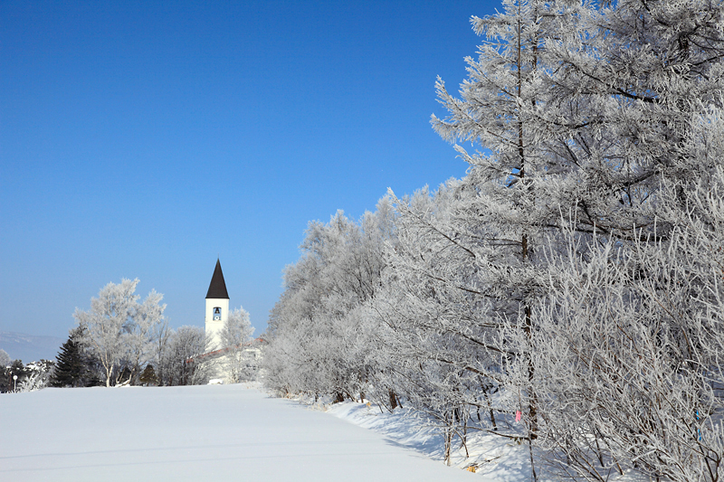 霧氷の美馬牛小学校