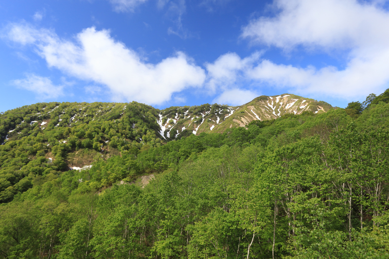 二股ラジウム温泉の近くに車中泊をして朝から長万部岳に登った。途中の開けた場所で特徴的な山頂部分が見えた時、疲れが一気に吹き飛んだ。