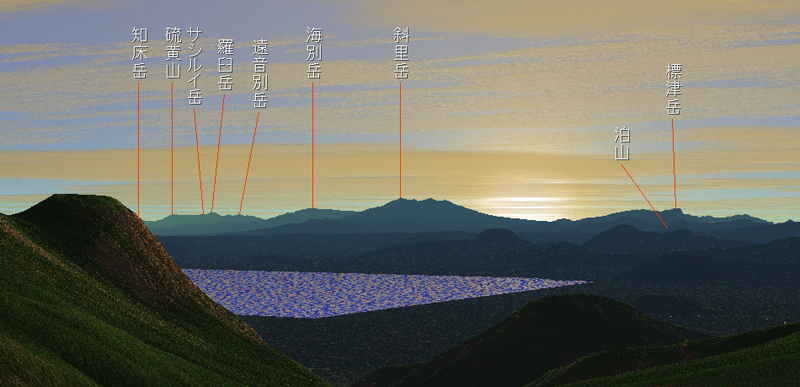 ちなみにカシミール3Dで津別峠からの眺めを合成するとこのようになった。