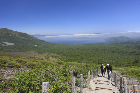 東山山頂までのルートは簡単だ。最初の急な階段を上りきれば展望の開けた稜線に出て、あとは気持ちの良い登りをするだけだ。しかもその眺めは圧巻。青空の下、背後に支笏湖を望むトレッキングは一度その爽快さを味わってしまったら二度と忘れられないに違いない。初めて登山をする人にはこんな山がオススメだろうと思う。一方、その点では羊蹄山はまったく逆だ。あの山は登りが長くてつらい上に最後まで展望がないから、初心者が登ったならば登山が嫌いになってしまうだろう。僕の職場にはまさにそんな不幸な人種がいる。
