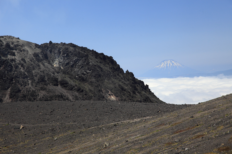 外輪山分岐から東山に向かって少し登った時、僕は思わず感嘆の声をあげた。溶岩ドームの右端から残雪の羊蹄山が姿を現したからだった。僕はここから羊蹄山が見えるとは知らなかった。もちろん2007年に書いた僕の登山記録にも載っていない。その時は見えなかったのかそれとも気づかなかっただけなのか。樽前山は昨年も長女(当時小2)と登ったので、ある程度は慣れているつもりだったがこれほどまでに他の山々が見えるという事実に、僕は認識を新たにした。