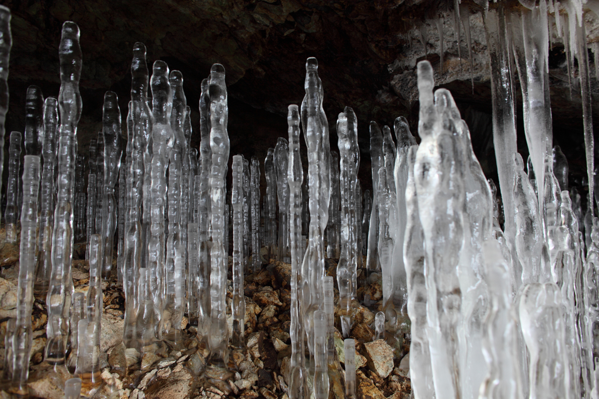 寒すぎると上からさがるツララになってしまうし、気温が高ければこれほど"成長"はしないのだそう。極寒の地の洞窟で気温が一定に保たれているからこその自然の不思議。