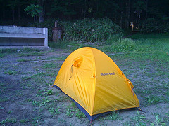 比羅夫コースの登山口は半月湖野営場となっており、無料でキャンプが可能となっている。