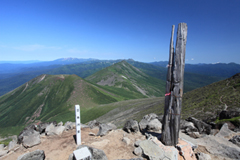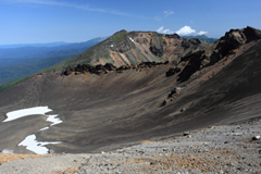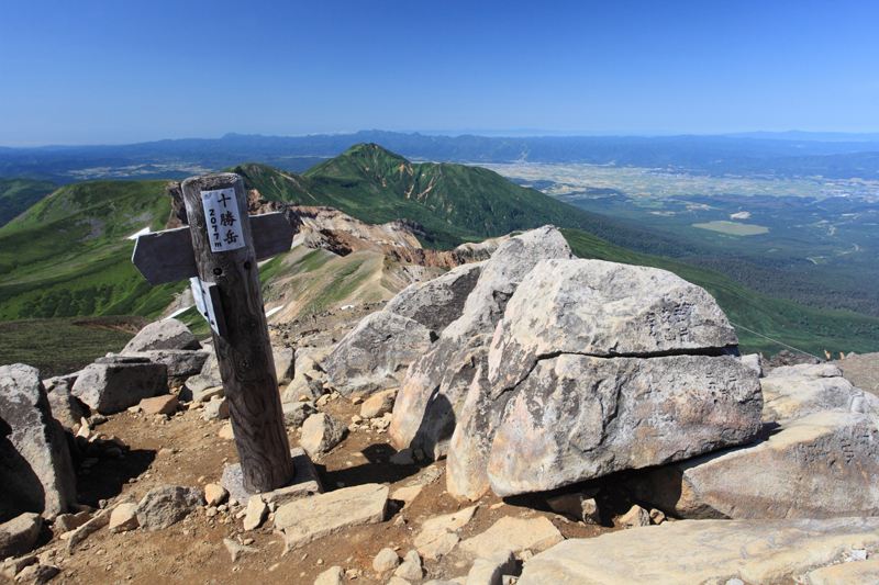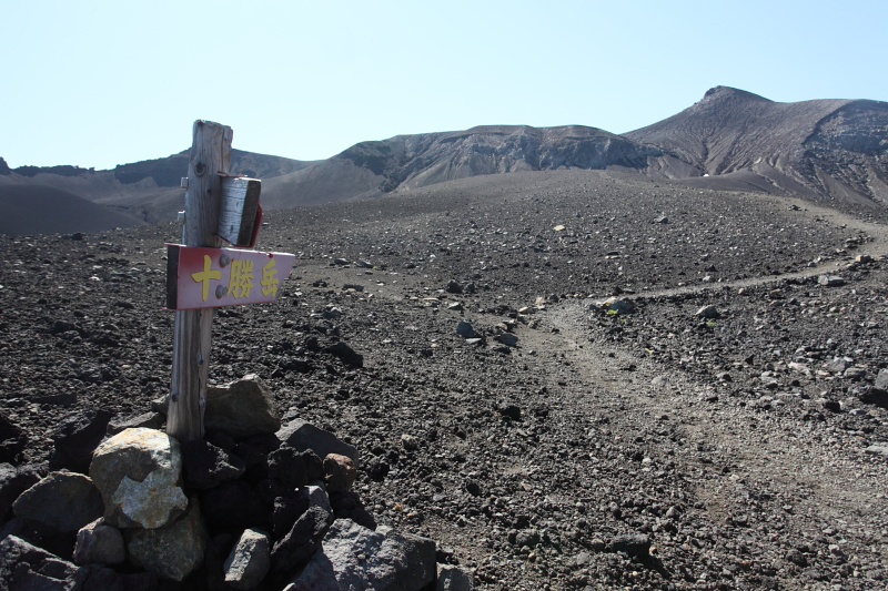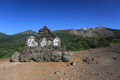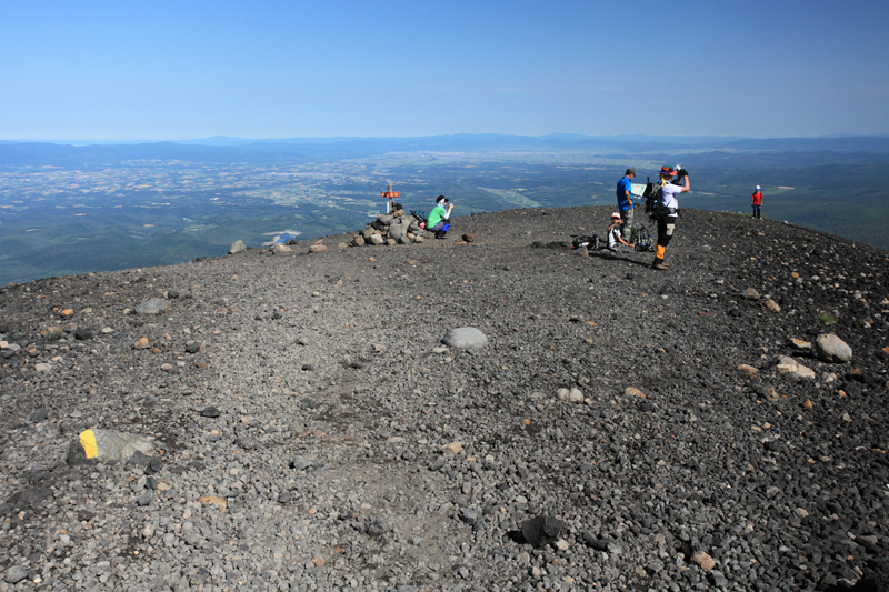 十勝岳山頂。到着時刻は午前9時50分。しばし休憩して水分補給をした。ほどよい風がとても心地よかった。小学校高学年くらいの少年もここまで登ってきていたのには驚いた。いつか親子でまた登るのも楽しいだろうと思う。