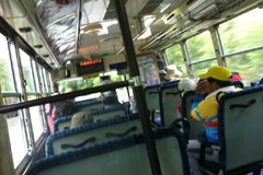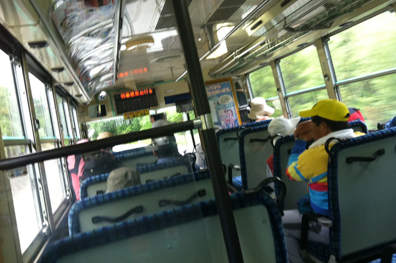 翌朝6時に、層雲峡YHの前から銀泉台行きのバスに乗った。昨日の緑のオジサンは、カラフルなオジサンに変身していた。