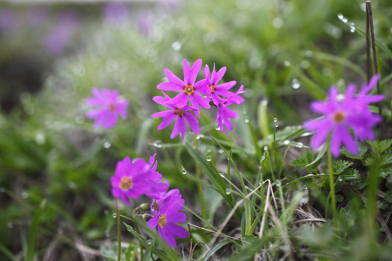 こちらはアオノツガザクラ。今回は荷物軽量化のためマクロレンズはシグマ製の50mmを持ち歩いていた。このレンズはあまり絞りすぎるとボケがうるさいが(リングボケみたいになる印象)、開放近くで撮ると実にすばらしい描写をしてくれる。一般的には絞らないとカッチリした描写にならないのが普通だから、この特徴は開放が好きな僕にとって実に好都合と言える。EOS 5D mark2のAIサーボ機能にも充分ついてきてくれるので三脚がなくてもいい写真を撮影可能にしてくれるのだ。
