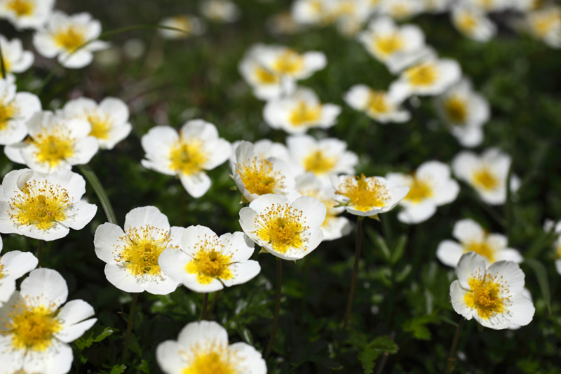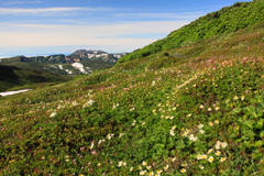 登山道の両脇にはチシマノキンバイソウが風に揺れていた。