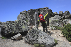 時刻はまだ14時前。僕はこれからの天気に期待して三脚の脚を探しつつ、元来た道をゆっくりと戻ってみることにした。重いザックがなければテント場から白雲分岐まではそれほどハードな行程ではない。そして先ほどは濃霧と強風でたどり着けなかった緑岳を巡ってみようと思ったのである。
