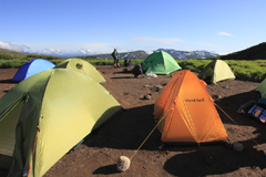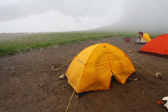 テント場に到着したのは13時ごろだったと思う。すでに多数のテントが張られていたが、僕はその中で水はけのよさそうな場所にテントを設置した。
