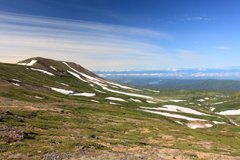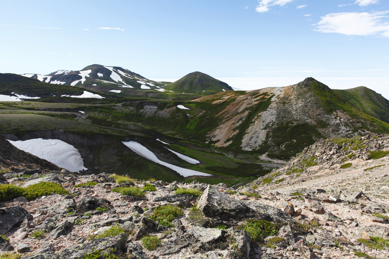 緑岳山頂よりトムラウシと高根ヶ原を望む。