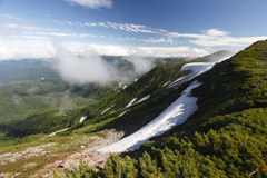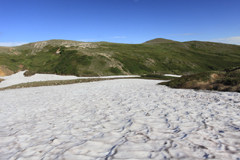 白雲分岐の北斜面に回り込むとまだ大きな雪渓が残っていた。