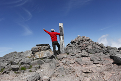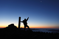 目の前の絶景を目にして僕は少し優越感に浸った。山頂の標識を前にポーズを決めてセルフタイマーで撮影してみた(笑)。