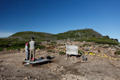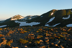ライトとGPSを頼りに板垣新道を登った。この道は昨日も通ったのでGPSに軌跡が残っており迷う心配はなかった。しかし、足元は不安定で注意を要した。途中で草むらの奥に動く影があった。もしやヒグマだろうか…?と僕は警戒したが、何の事はない、自分の照らしたライトがハイマツに当たって影が動いただけであった。