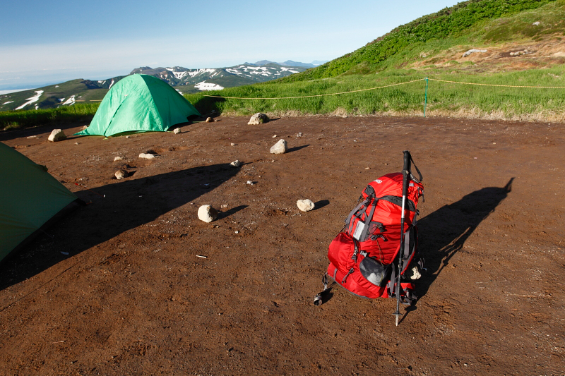 5時過ぎにテント場に戻るとほとんどの人が出発の準備を整えていた。僕がザックを担いでテントに戻ると、ツアー客の女性から、どこに行ってきたんですか?と聞かれた。緑岳でご来光を見てきましたと伝えると、そんな方法があったんだぁ、と目を丸くしていた。