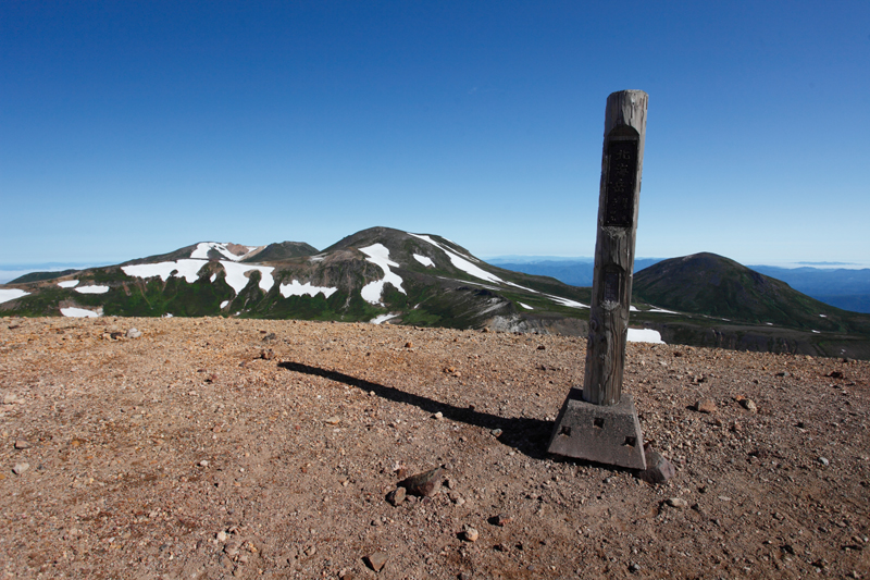 北鎮岳の裏側にはシャープな山容を呈した愛別岳があった。稜線をたどればあの山にも登れるはずだがかなり険しそうだ。僕の後から登ってきた男性はラジオを鳴らしつつ、一人で愛別岳方面へと歩いていった。