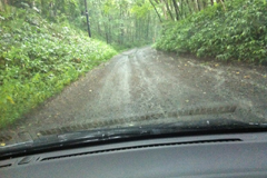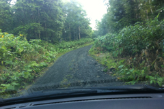 トムラウシ温泉への道は途中からダートに変わる。道はそれほど走行に苦労はしないものの雨量が多いときは通行止めになるのだとか。こんなに雨が多い日だったからいつ通行止めになってもおかしくなかった。っていうか、全国に数ある温泉のなかでも、こんな辺鄙な場所にあるところはおそらくないだろう。