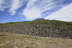 前トム平からすこし登るとガレ場にでる。そこではいたるところからナキウサギの、あの「ピチーッ」という声が響いていた。その声がするたびに目を凝らしてみるがなかなか姿を見ることは出来ない。