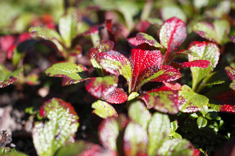 登山道を彩るウラシマツツジはもう紅葉が始まっていた。あたかも、また秋に登りに来なさいと話しかけているように・・・。