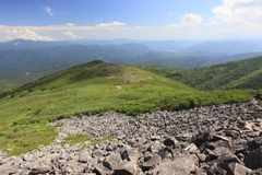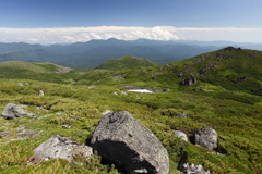 再び岩の合間を縫って登り詰めると、目の前には先ほど歩いてきた前トム平のなだらかな景色が広がっていた。これから長ーい道のりを折り返してようやく帰路につく。