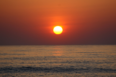 石狩の海に沈む真っ赤な夕日。