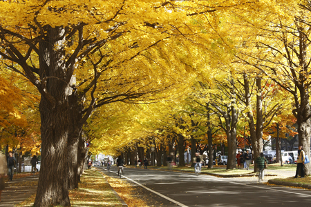 北大在学中は毎年のように見ていたはずのイチョウ並木。ファインダーを通してみると今更ながらその見事さに息を飲む。