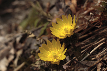 春の訪れを告げるフクジュソウ。街中では見かけることも少なくなったこの花は絶滅危惧種に指定されている地域もあるのだという。季節の移り変わりに鈍感になってしまった現代人の意識を自然は反映しているのかもしれない。