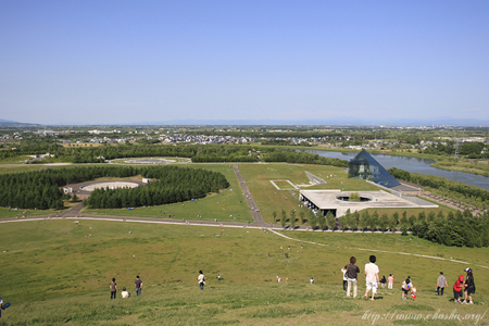 温かくなるとモエレ沼公園では多くの家族づれが休暇を楽しむ様子が見られる。