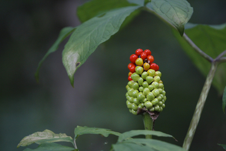コウライテンナンショウ(マムシグサ)の実がなる季節…。