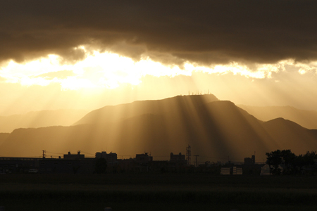 晴れた日の夕刻、車を走らせていると背後に日が差して手稲山を明るく照らし出した。