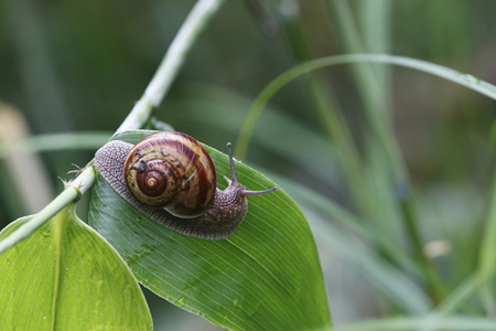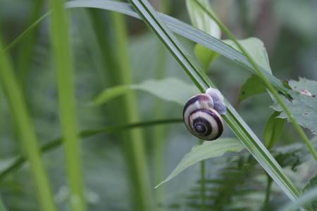 森ではエゾマイマイも雨上がりの葉っぱの上を気持ち良さそうに濶歩していた。(足はないが…。)