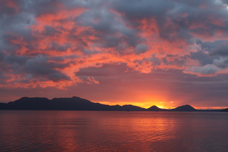 早朝、胸騒ぎがしてテントから出るとみるみる空が赤く染まっていった。