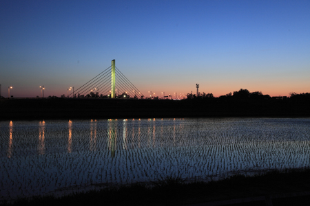。 この日黄昏時のグラデーションが田圃に映って、見事な情景を作りだしていた。