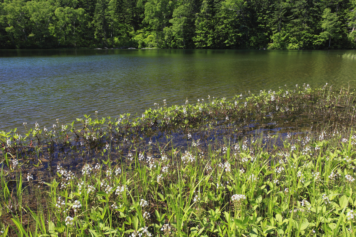 万計沼のほとりには、ミツガシワの花が満開だった。 地味な花だけど、一息ついた体と心を休めるには最高だった。