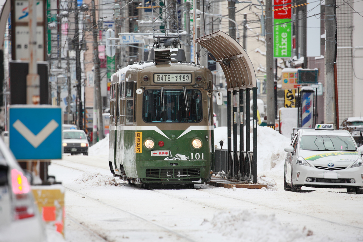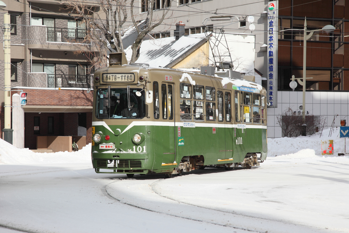 やはり緑のレトロな車体は街並みによく合う。もうそろそろ引退かもしれないけど、方向幕が「西4丁目-すすきの」のうちになるべくたくさんの姿を残しておきたいと思っている。