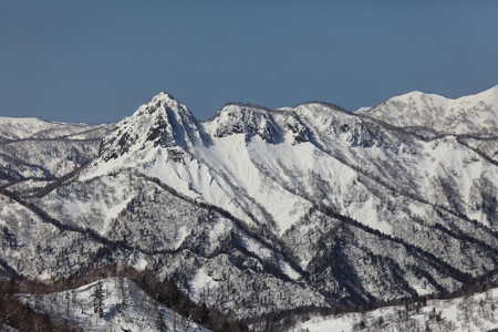 百松沢山より定山渓天狗岳を望む。その荒々しい姿にはいつも息をのむ。