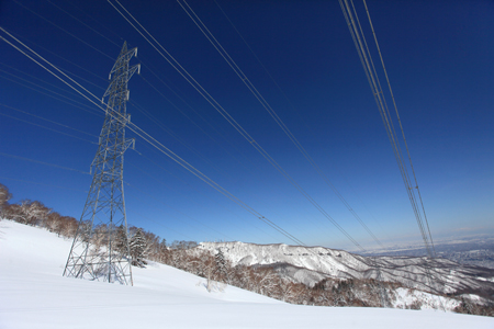 送電線をくぐって
