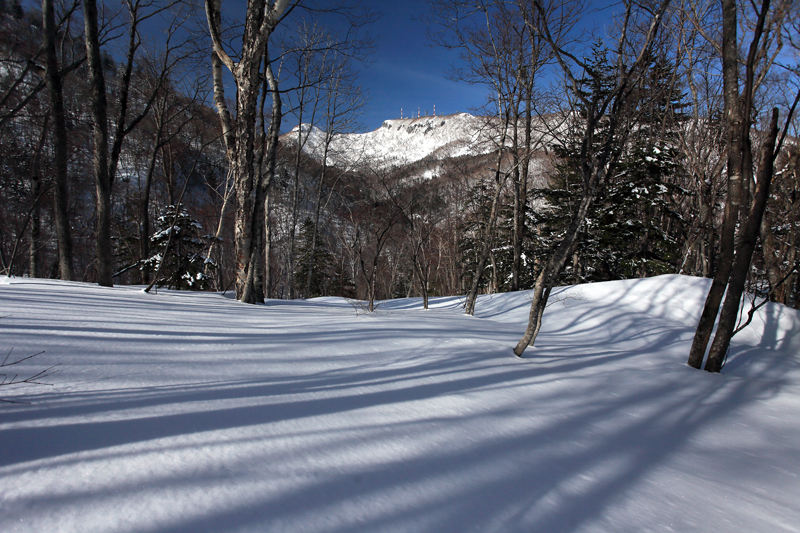 ゼブラ模様に影が伸びた雪原がなんだかフォトジェニックに感じ、立ち止まって撮影した一枚。