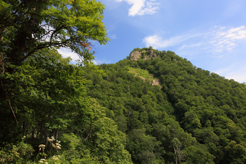 登山道から見えた神威岳の岩峰部分。
