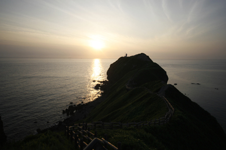 チャレンカの小道から望む、カムイ岬の夕暮れ。