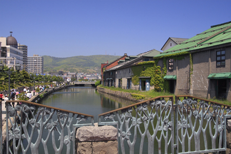 銭函天狗山に登った後、あまりに天気が心地よいので小樽運河に立ち寄った。倉庫群の壁にかたみついたツタウルシもすっかり新緑に変わっていた。