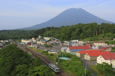 羊蹄山の麓を列車が走る。いかにもニセコらしい雰囲気だ。