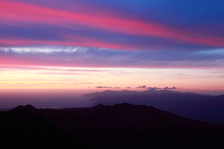 ニセコアンヌプリから見た夕焼けの日本海と積丹半島。