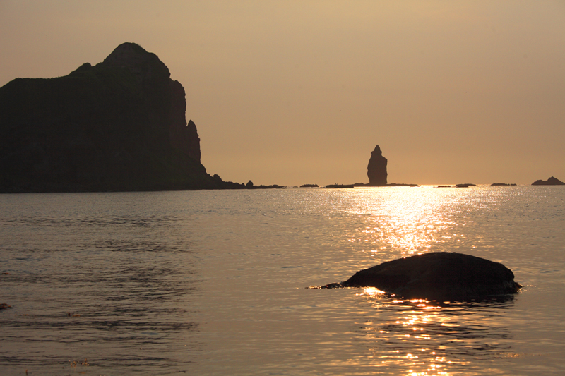 神威岬に日が沈む。
