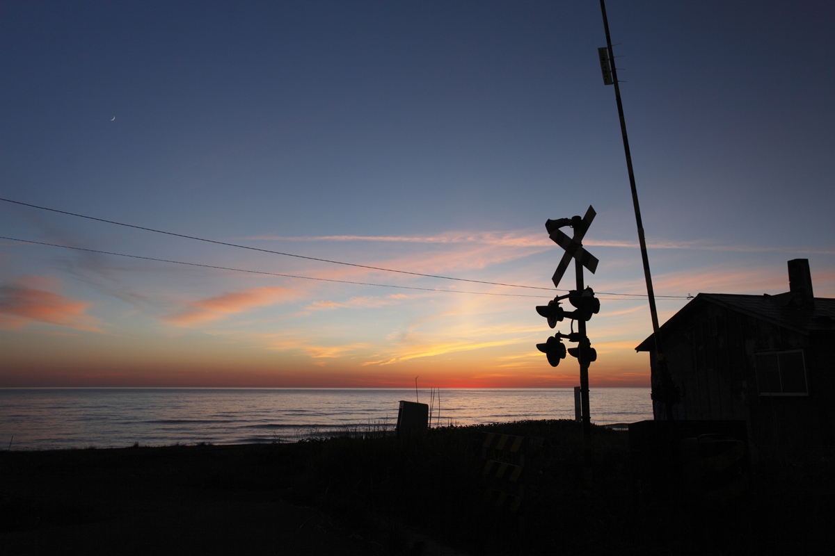 列車の走り去った駅のホームに、一人佇む。